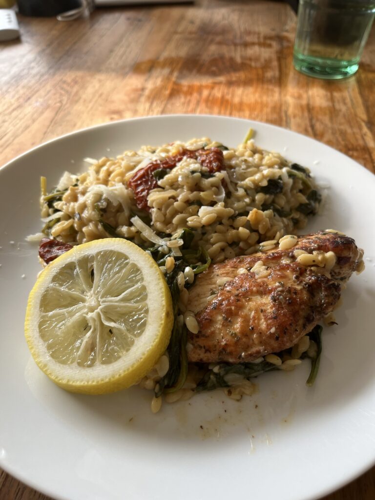 Orzo met kip en spinazie