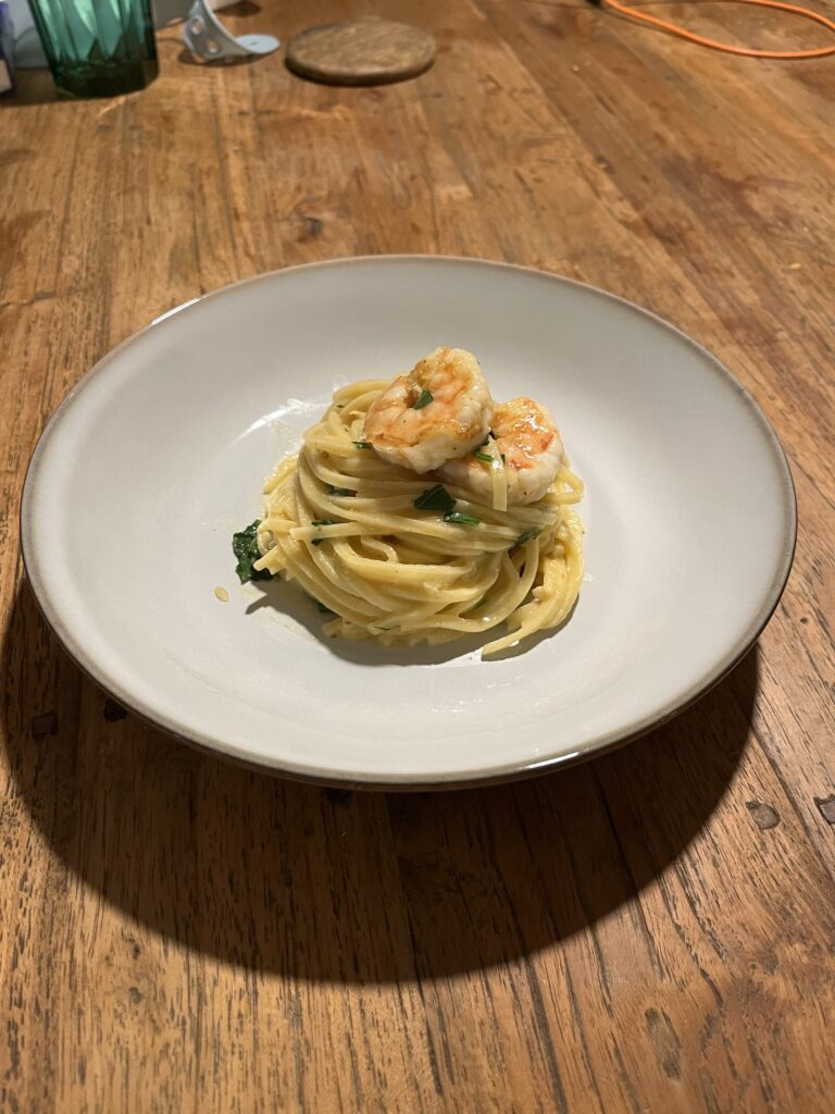 Pasta met asperge en spekjes